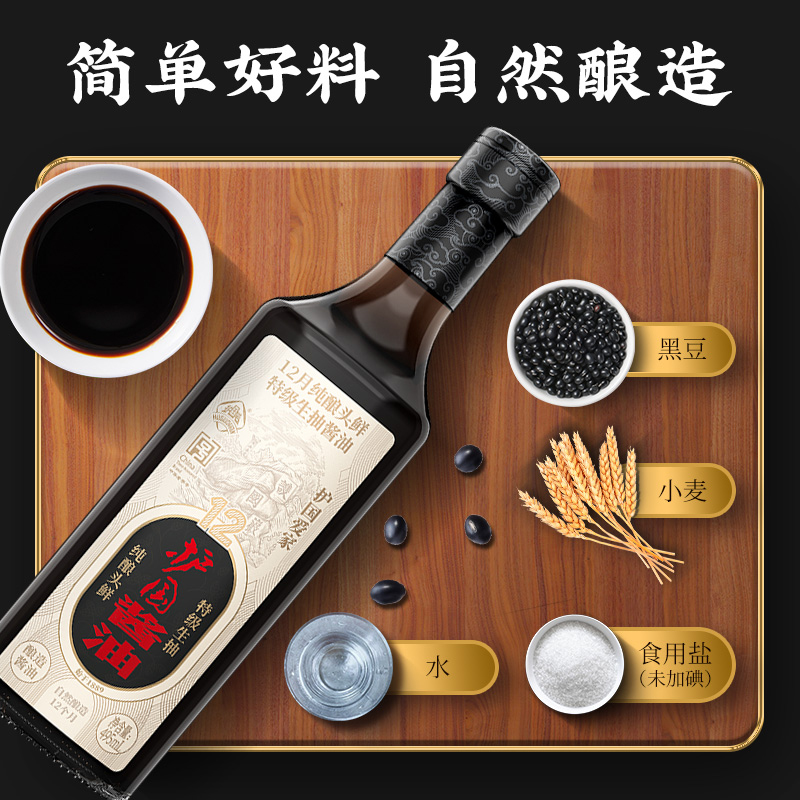 护国岩12月纯酿头鲜特级生抽495ml